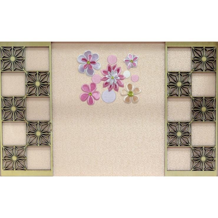 背景には麻の葉柄をあしらった格子を配し、華やかな花柄も加えることで、上品な華やかさを演出しました。