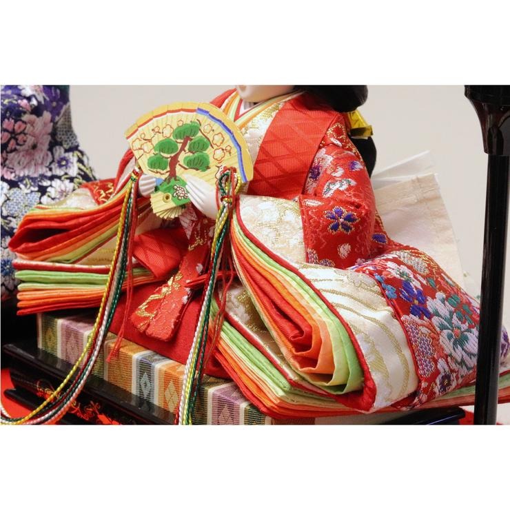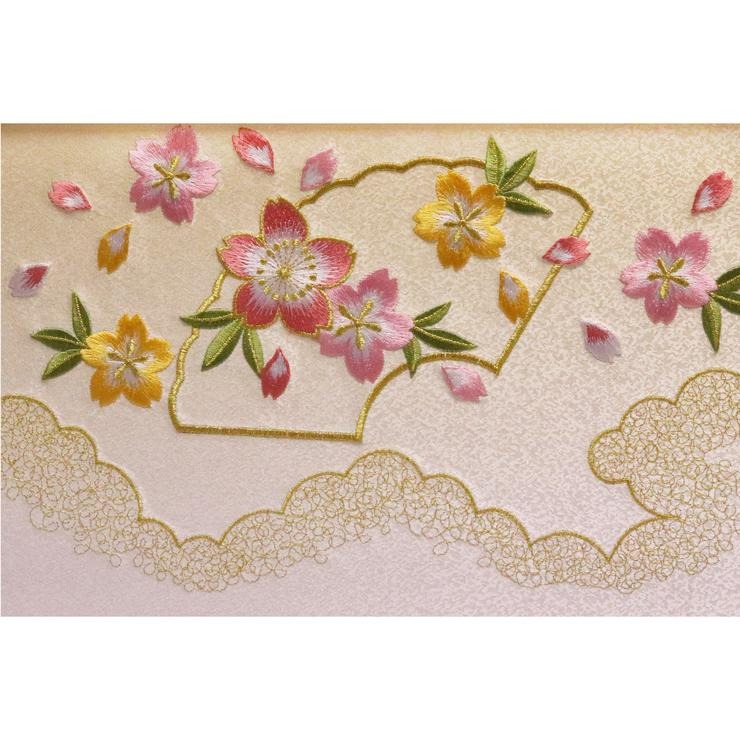 背景には、格子を付けた扇に満開の桜柄を刺繍し、絢爛豪華な雰囲気を演出しています。