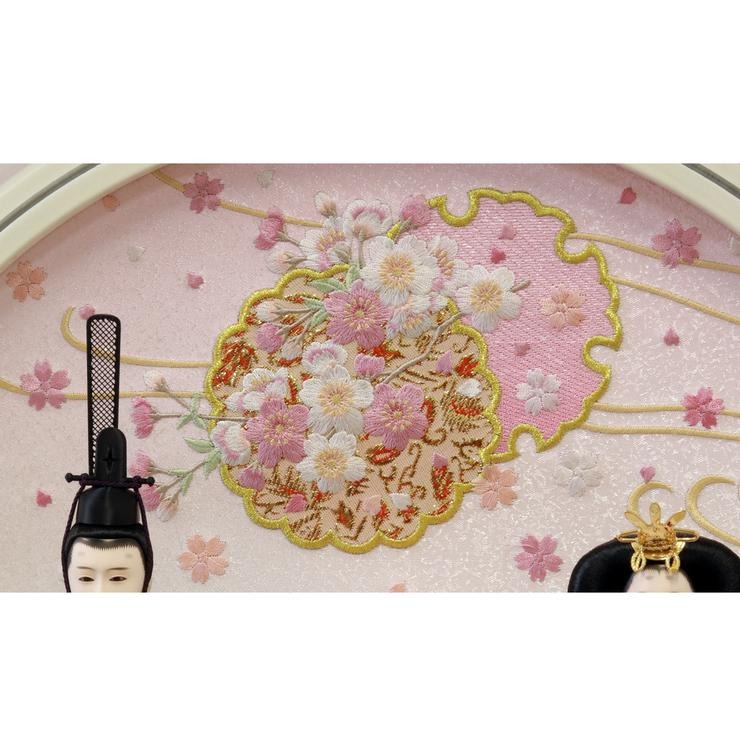 背景には優しいピンクのぼかしを施し、中心には雪輪と桜の刺繍が美しく彩りを添えています。