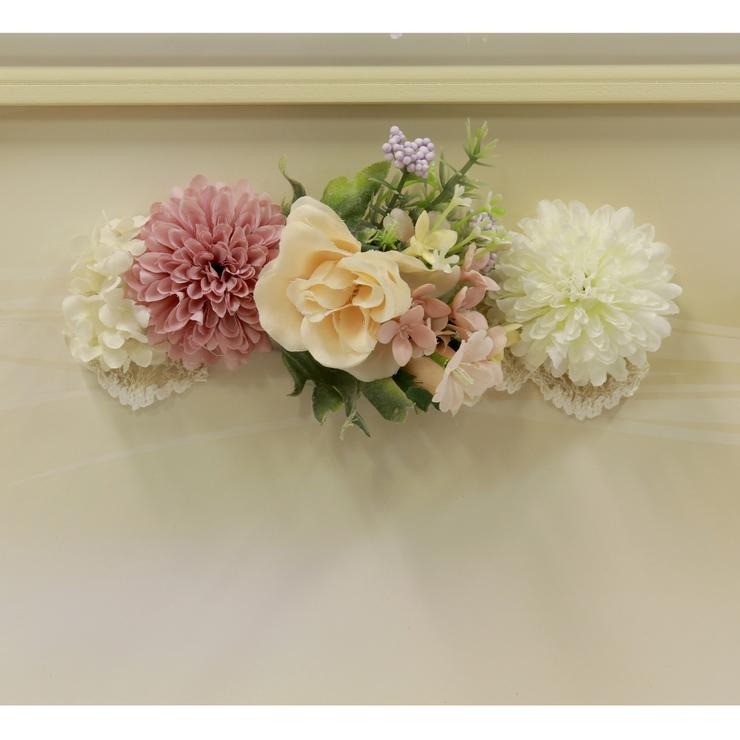 背景には立体的なアートフラワーを贅沢に使い、華やかな空間を演出。