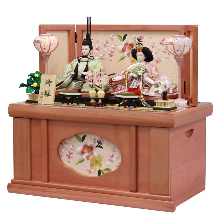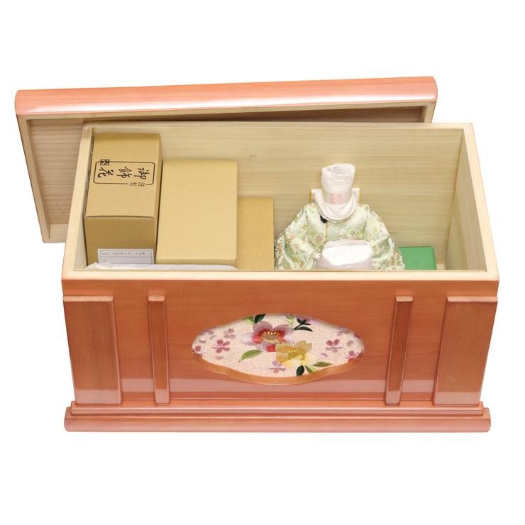 上品なパールピンクで仕上げた、お飾りがそのまま仕舞える便利な収納箱タイプです。
