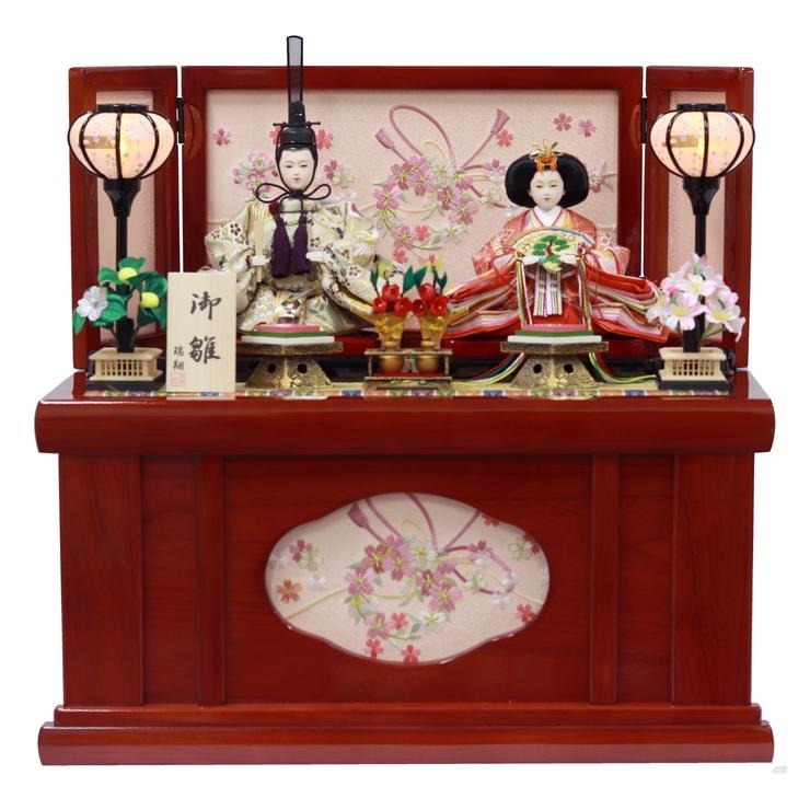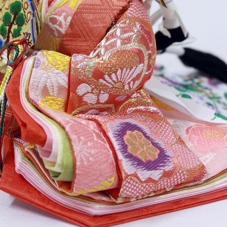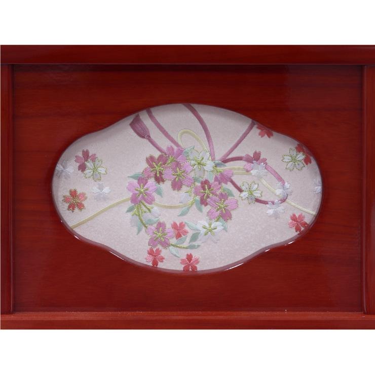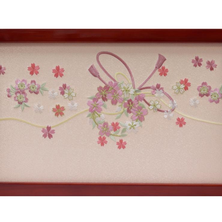 飾り台となる箱の屏風や幕板には、上品な「花丸リボン柄」の刺繍をデザインしました。