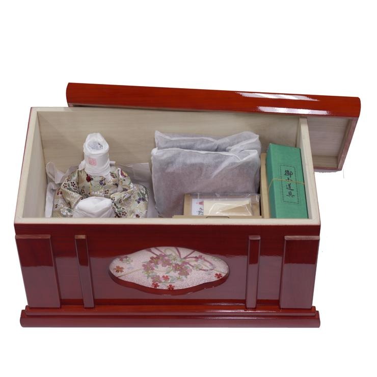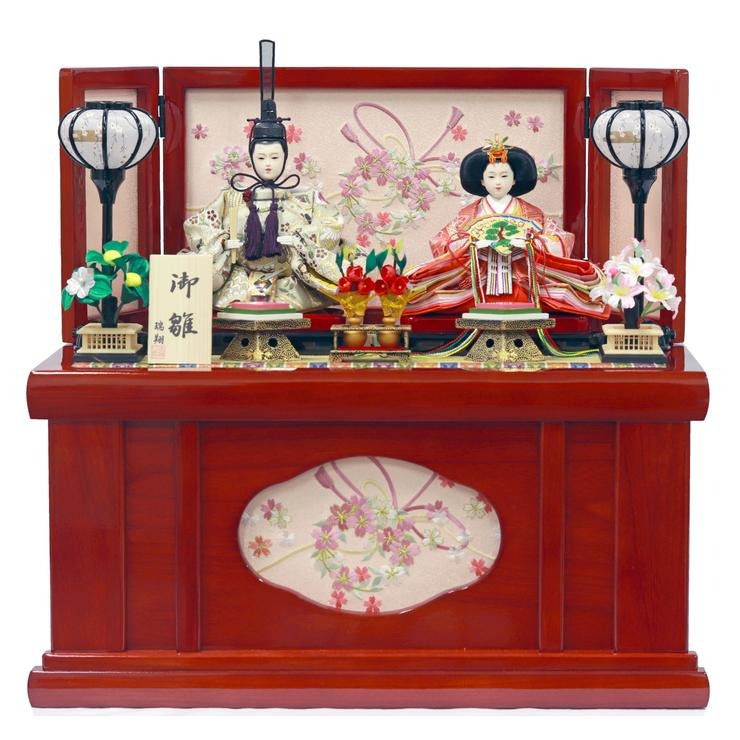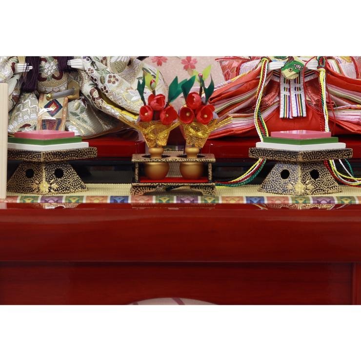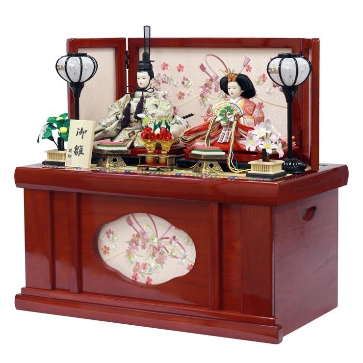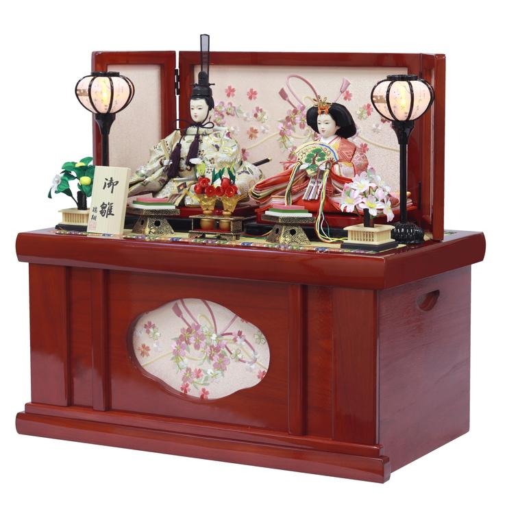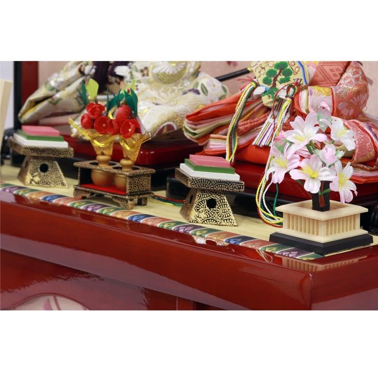落ち着いた赤塗りで仕上げた、便利な収納箱タイプのお飾りです。