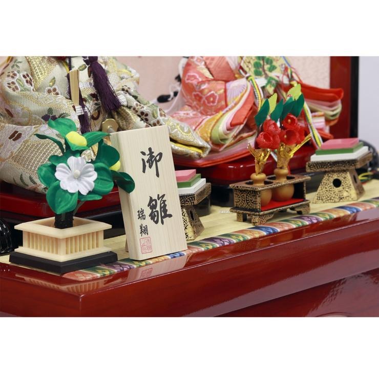 鮮やかな赤色の中にも、落ち着いた雰囲気が漂う、格調高いお雛様です。
