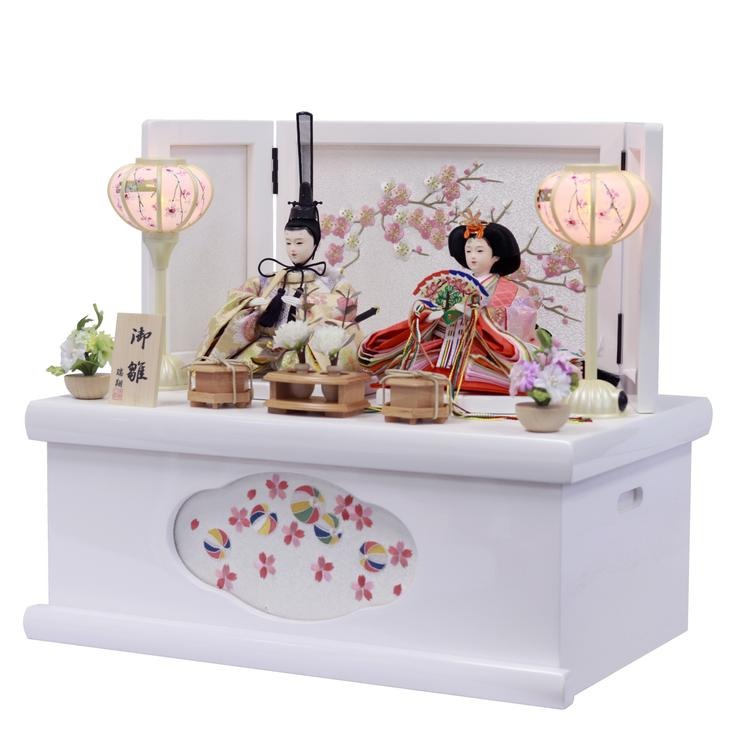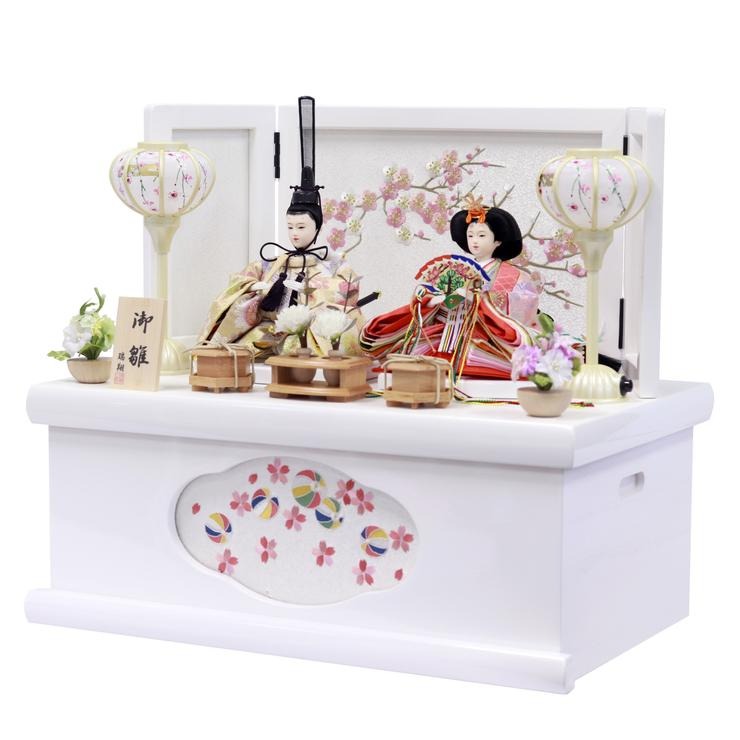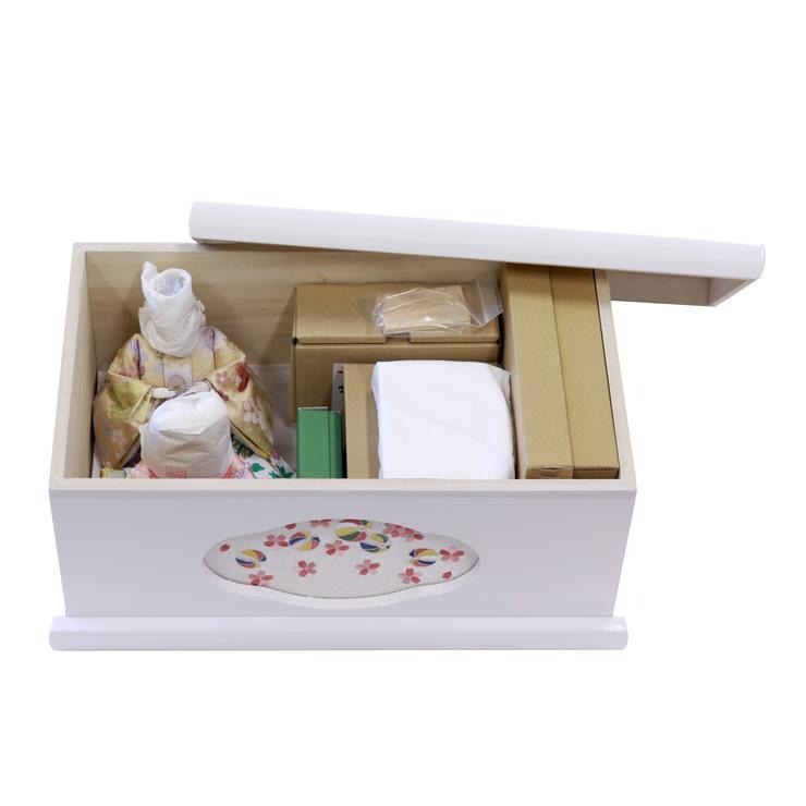 白塗りで仕上げた、コンパクトな収納箱タイプのお飾りです。