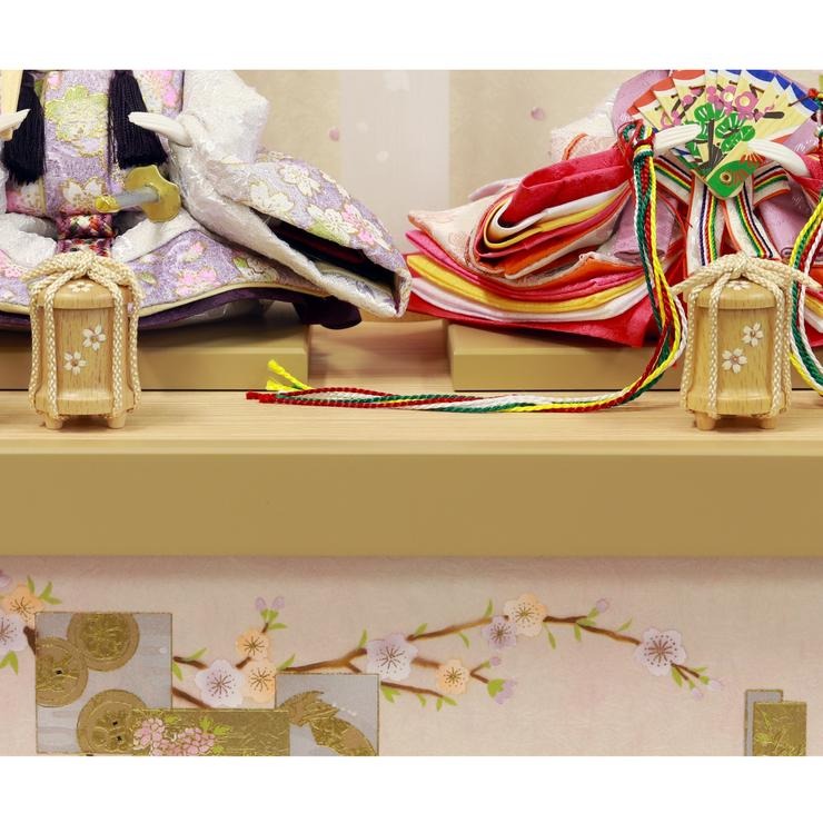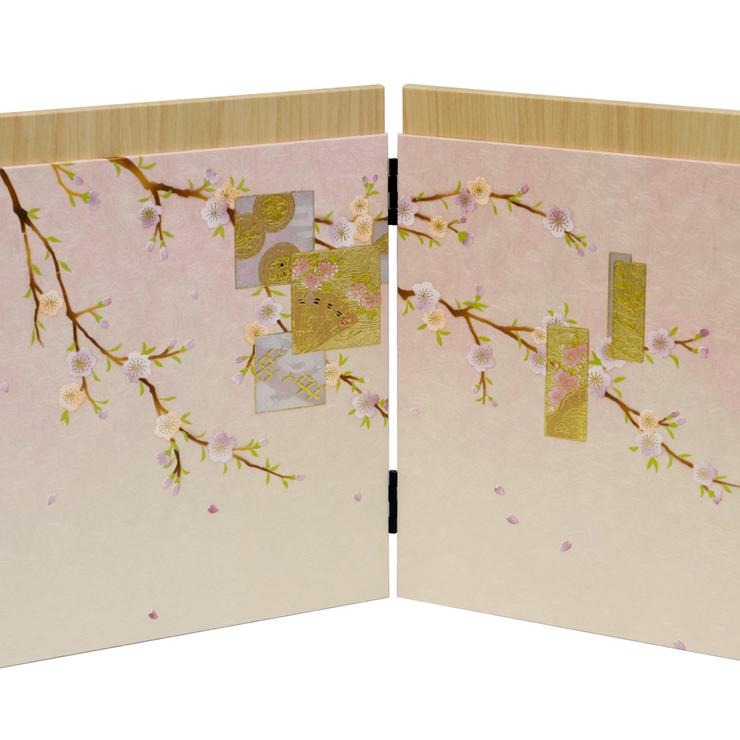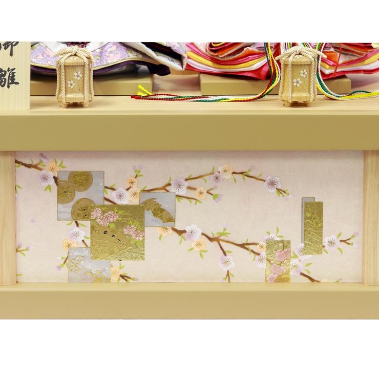 飾り台となる箱の幕板と屏風には、風情あふれる枝垂れ桜を優雅に描きました。