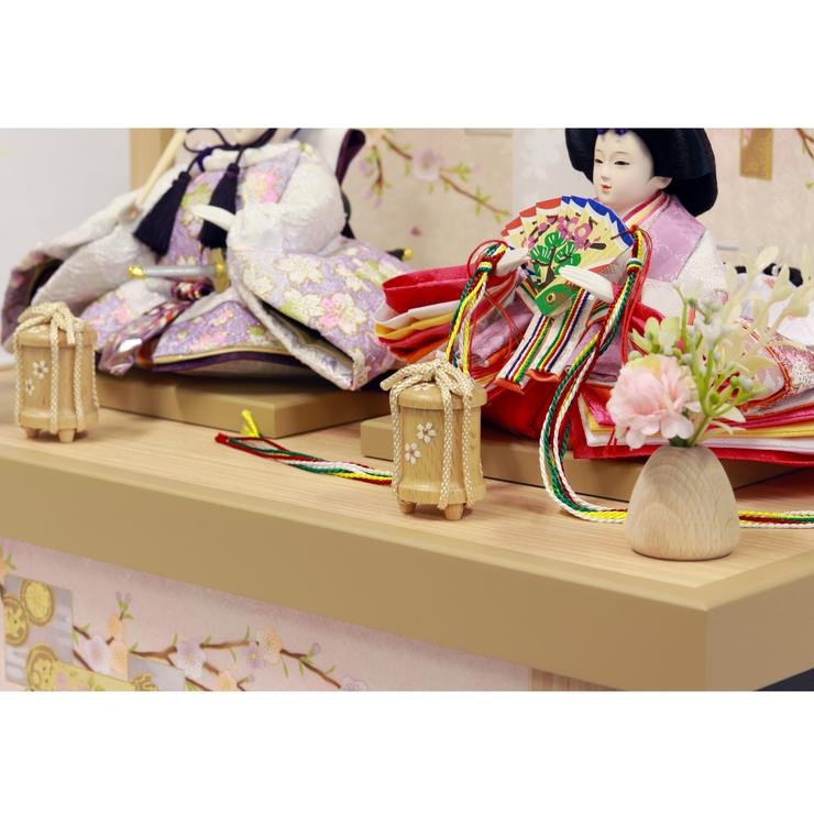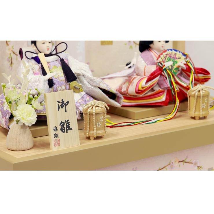 さらに、お人形の前に飾るお道具やお花も同じ白木調で統一。細部にまでこだわった、まとまりのあるデザインが魅力です。