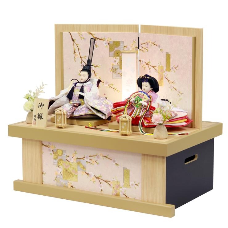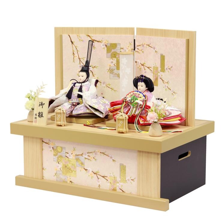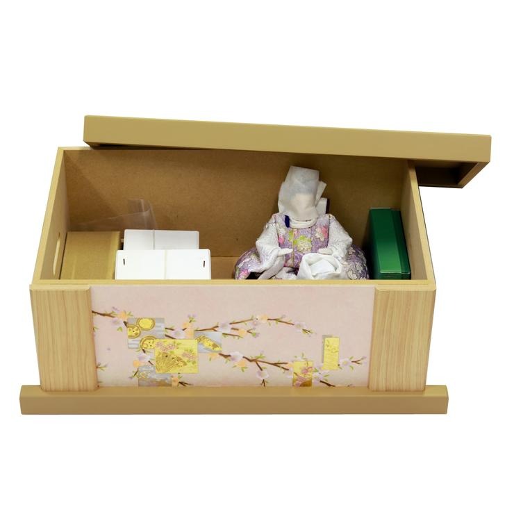 ナチュラルな白木調で仕上げた、コンパクトな収納箱タイプのお飾りです。