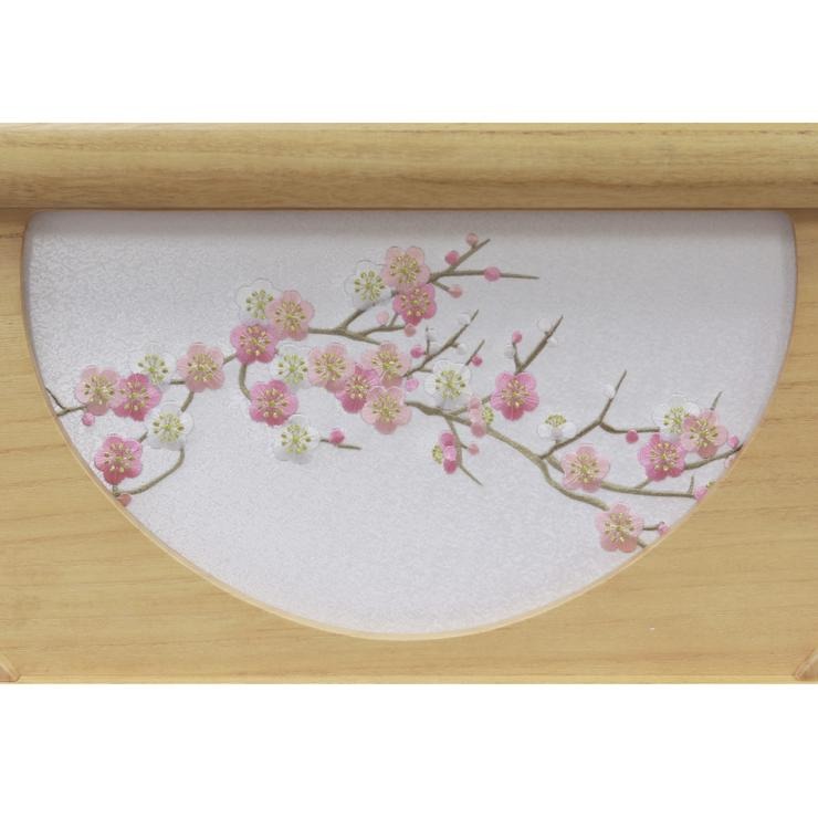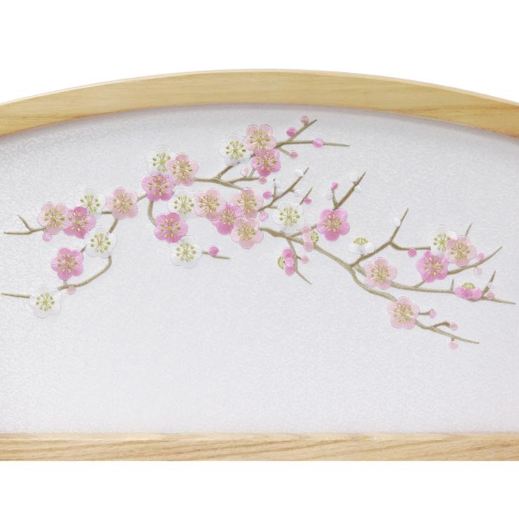 屏風と幕板には、凛とした梅の柄をシンプルにあしらいました。