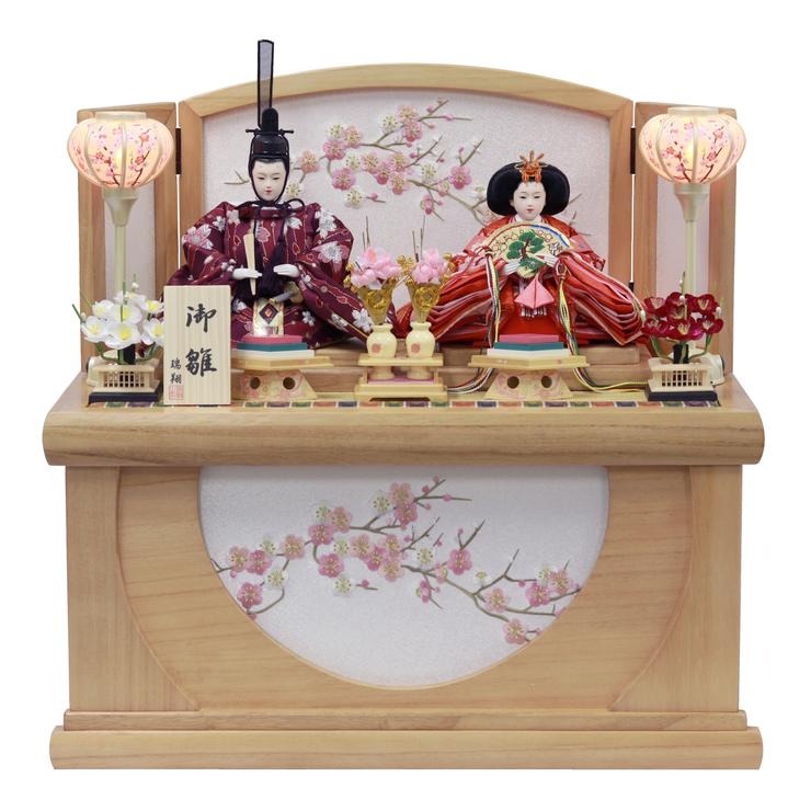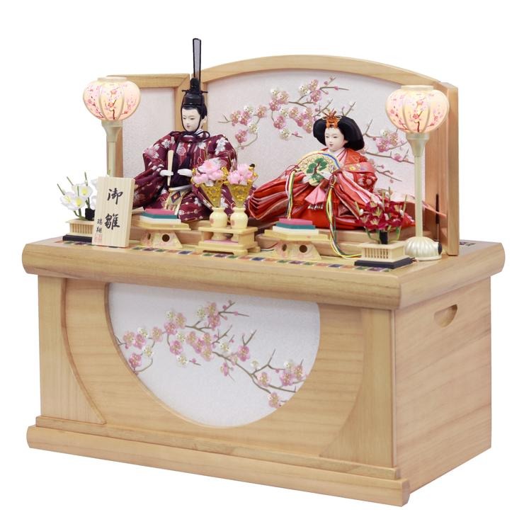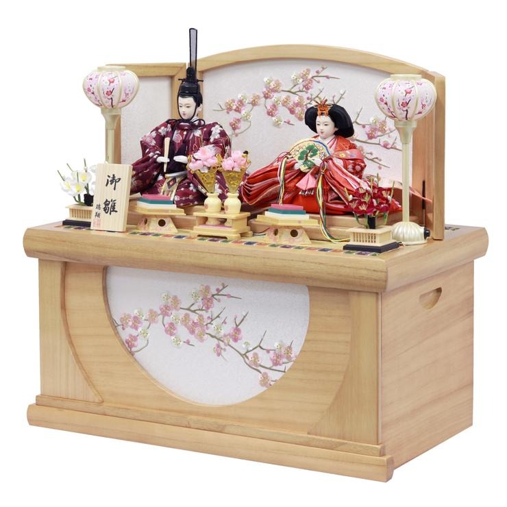 温かみのある木目調で仕上げた、コンパクトな収納箱タイプのお飾りです。