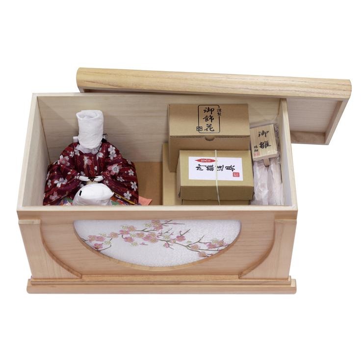 お片付けの際は、お人形やお道具一式がこの一つの箱にすっきりと収まります。