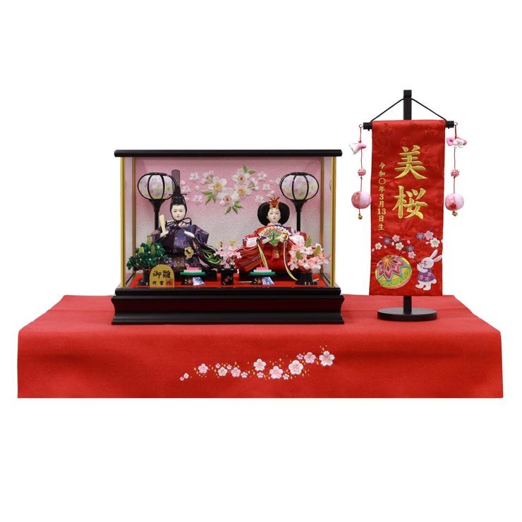 セットの名前旗「うさぎと桜手まり」の愛らしいモチーフが、格調高い雰囲気の中に、春らしい優しさを演出します。