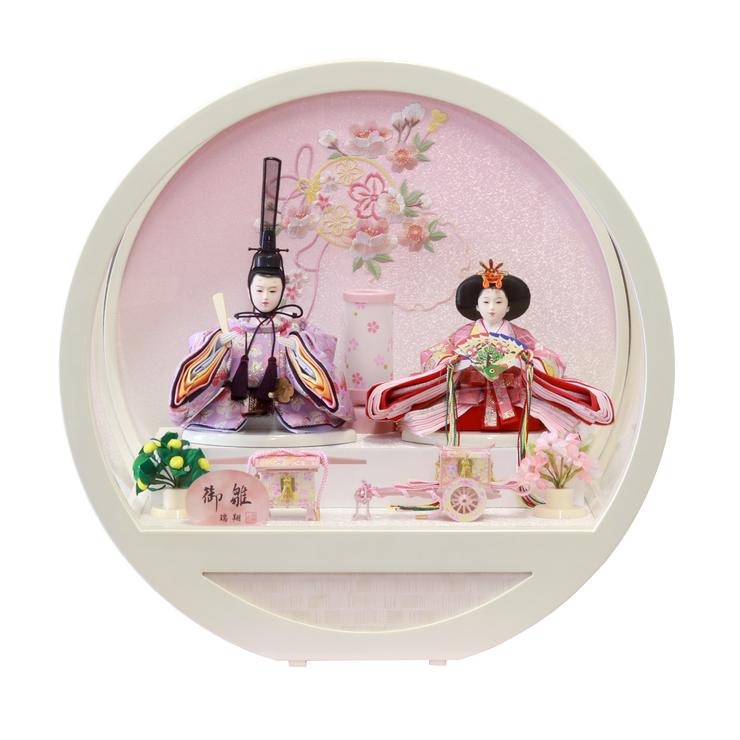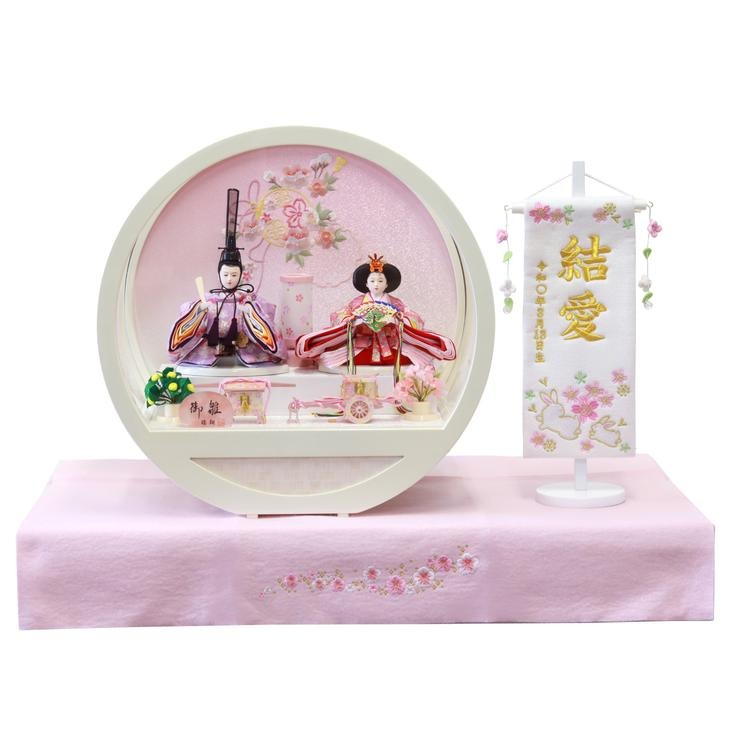 白とピンクを基調にコーディネートした、可愛らしい雛人形セットです。
