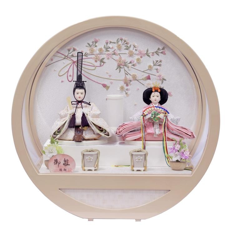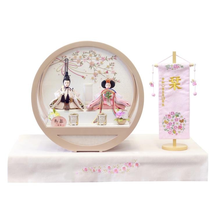 やわらかな色合いでまとめ、全体を優しい花柄でコーディネートした雛人形セットです。