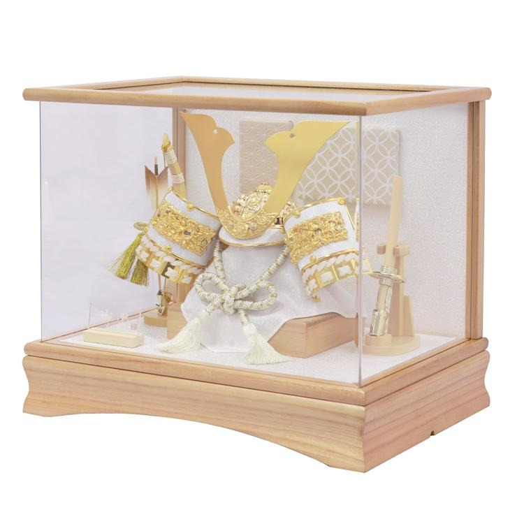 リビングや洋室にも自然に溶け込む、白木調のナチュラルな兜飾り。伝統的な力強さはそのままに、白を基調とした兜が優しく上品な雰囲気を演出します。温かみのある白木調のケースは軽量なアクリル仕様。割れにくく安全なので、小さなお子様がいるご家庭でも安心してお飾りいただけます。