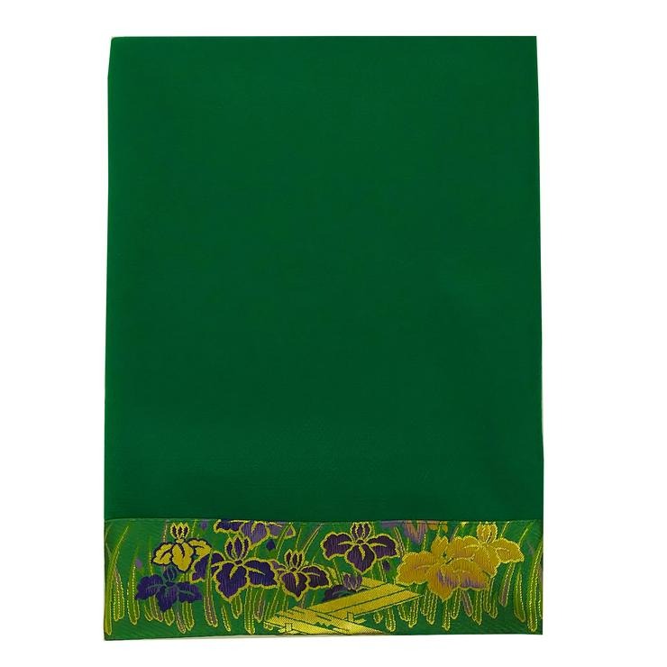 お手持ちの五月人形を、一層豪華に、格調高く。鮮やかな緑色が、兜や鎧の勇壮さを引き立てる敷物です。裾にあしらわれた菖蒲柄が、お祝いの場に季節の彩りと華やかさを添えます。間口75cmと、コンパクトな兜飾りや飾り棚の上にも飾りやすいサイズ。さっと敷くだけで、そこが本格的なお節句の舞台に早変わりします。
