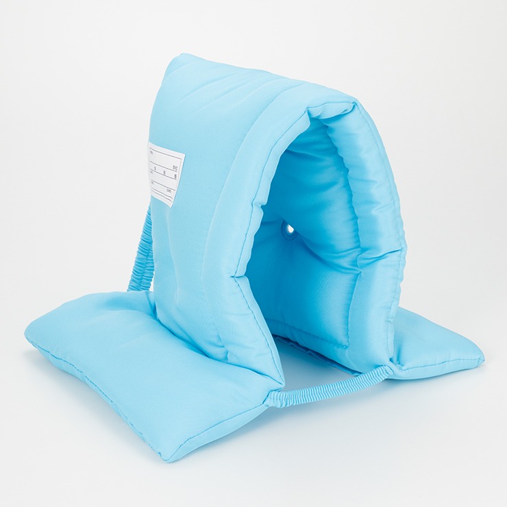 中綿たっぷりで衝撃にも強く、生地は難燃加工素材を使用した防災ずきん。