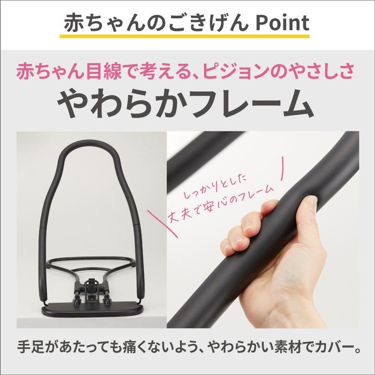 しっかりとした丈夫で安心のフレームは、手足があたっても痛くないよう、やわらかい素材でカバー。赤ちゃん目線で考える、ピジョンのやさしさです。