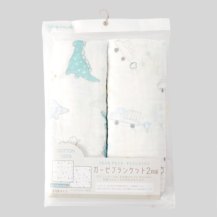 「恐竜柄とくるま柄」の2枚組ガーゼブランケットです。