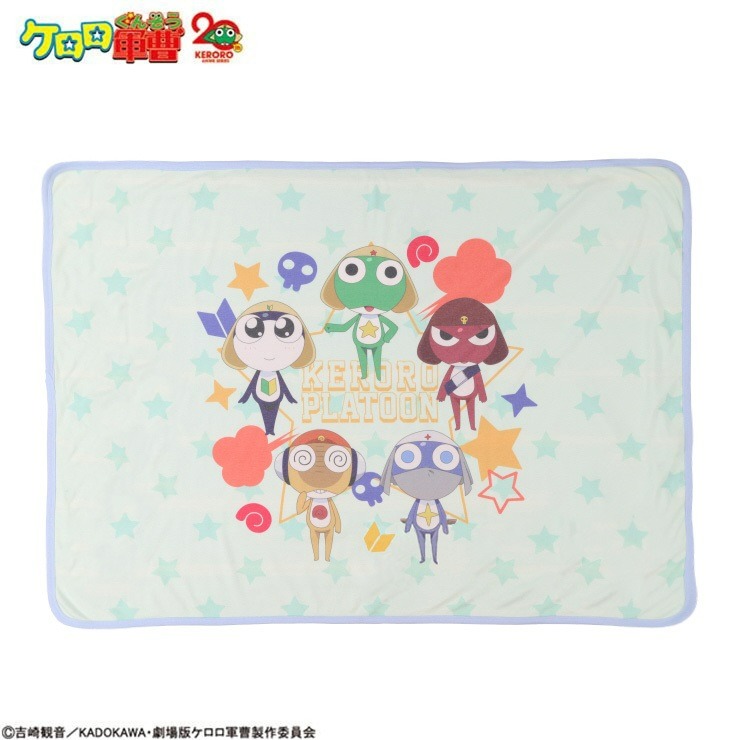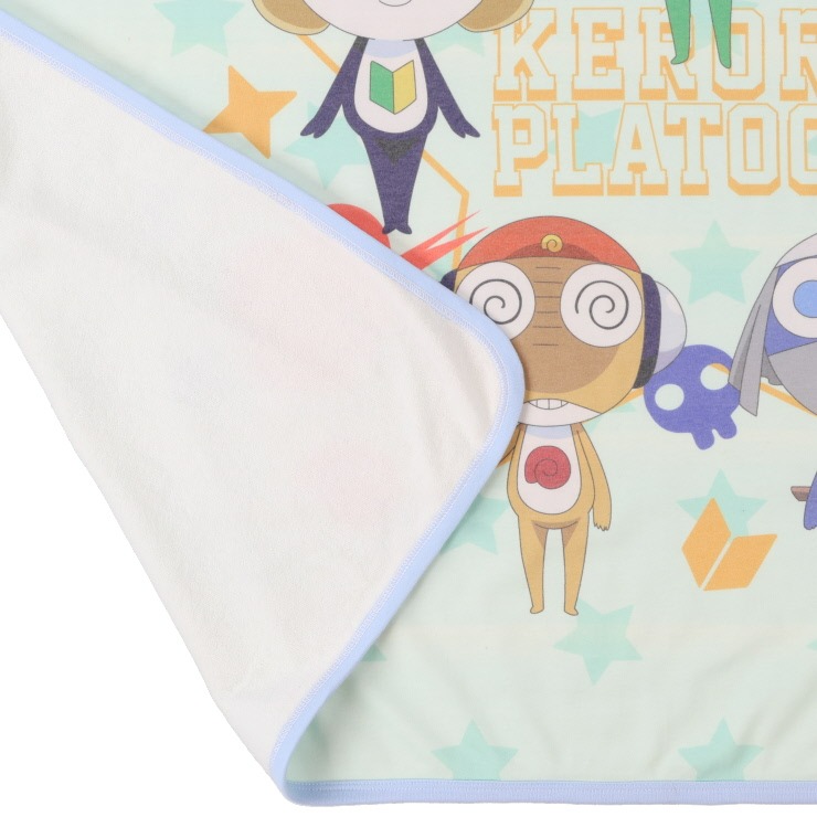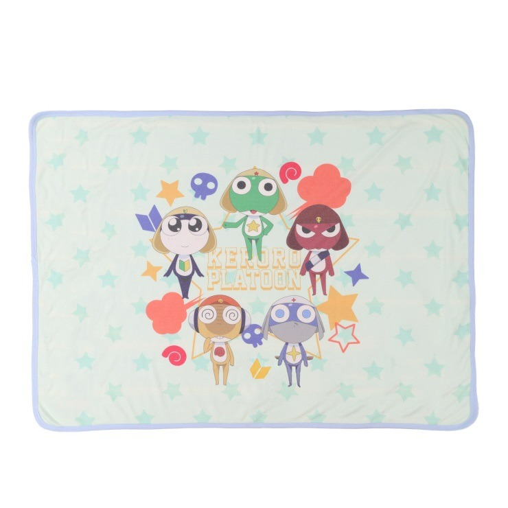 アニメ『ケロロ軍曹』タオルケットがオンラインストアに登場! 表地はスムース素材を使用しており、キャラクターを前面に大きくプリント、裏面は風合い柔らかなパイル生地を使用したタオルケットです。