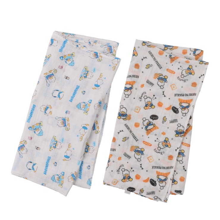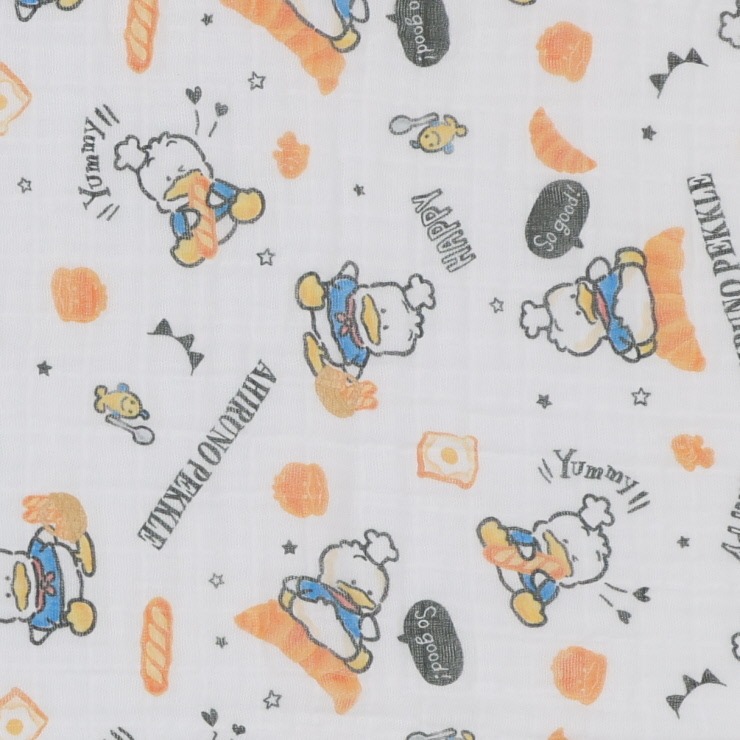 「サンリオキャラクターあひるのペックル柄」のガーゼケットです。
