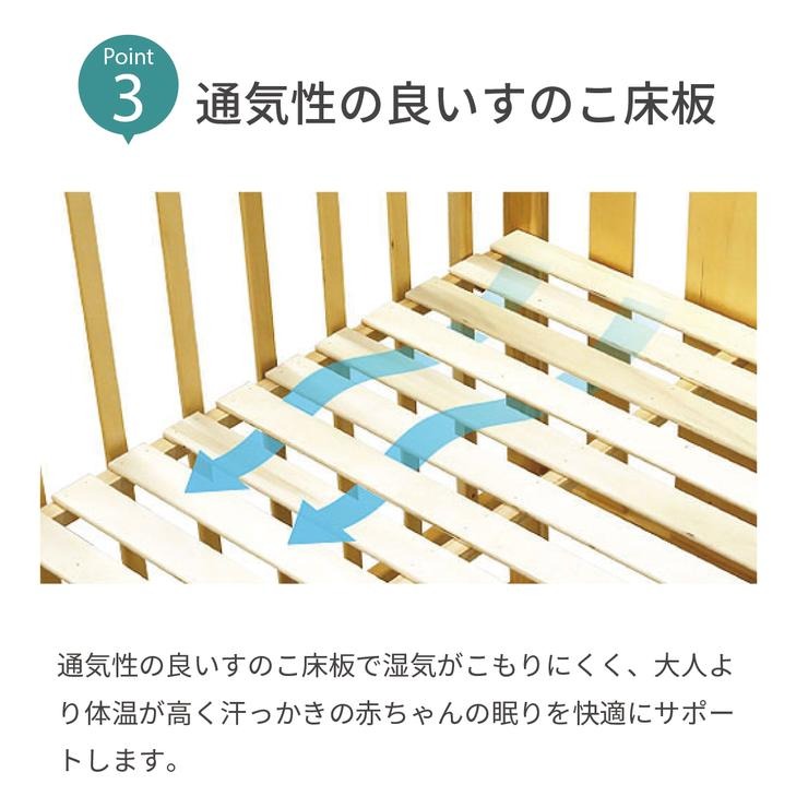 赤ちゃんの成長に合わせて床板が2段階調節できて便利!