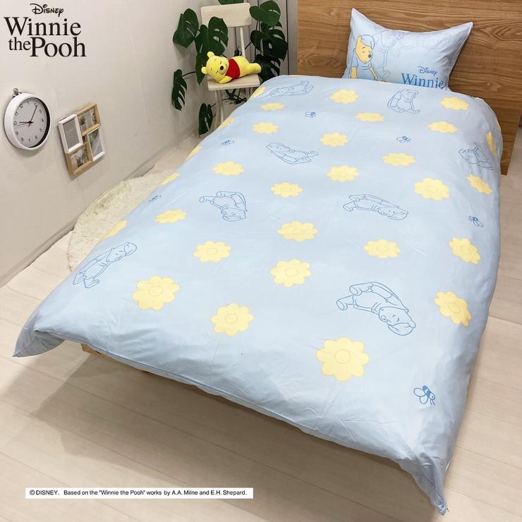 掛布団カバーはずれない8か所ひも付きの『くまのプーさん』デザインの可愛い2点セットカバー