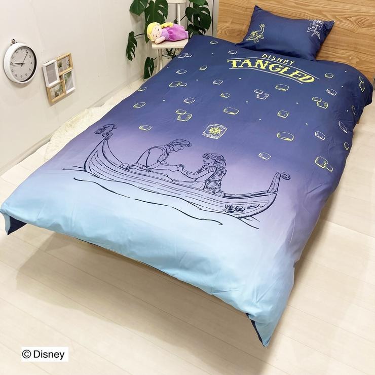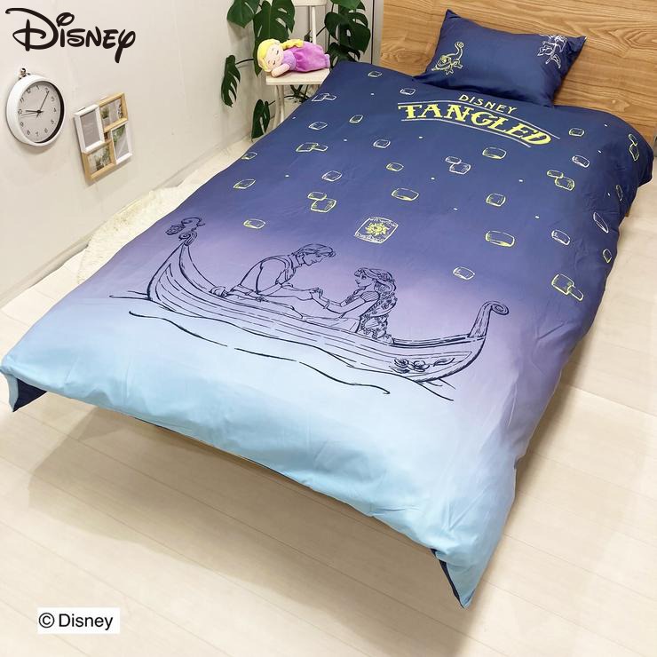 掛布団カバーはずれない8か所ひも付きの『塔の上のラプンツェル』デザインの可愛い2点セットカバー