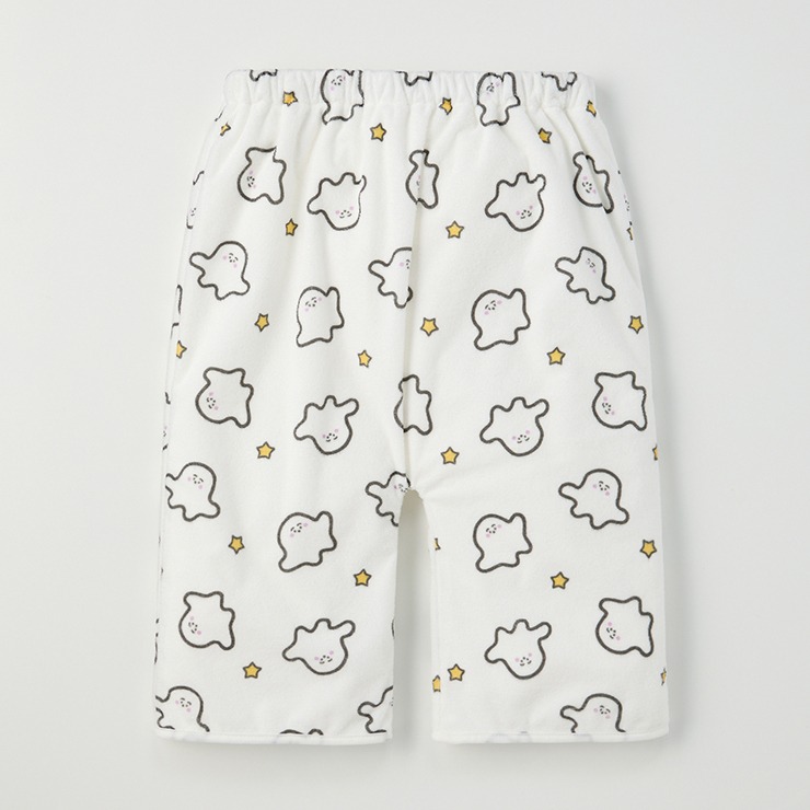 「シナぷしゅ柄」のおねしょパンツです。 ウエストゴムで取り換え可能です。 股下、両脇を防水テープ仕様で縫い目からの漏れをガードします。