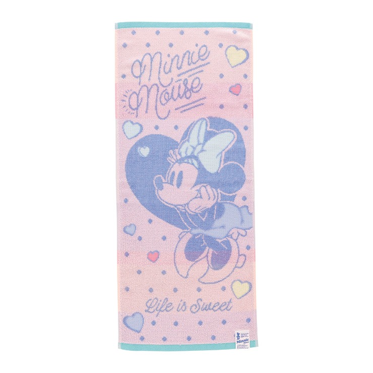 淡く優しいパステルカラーとレトロな配色が印象的なタオルです。