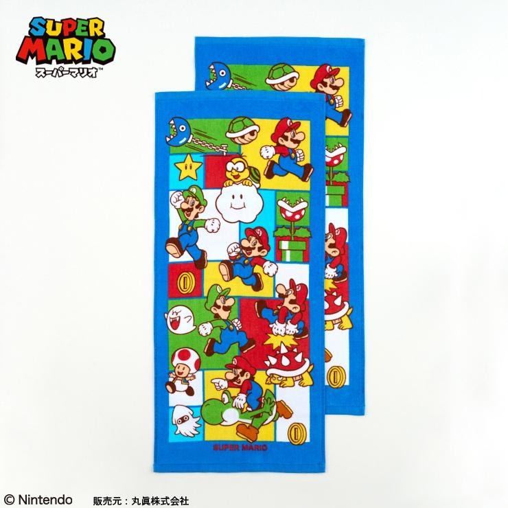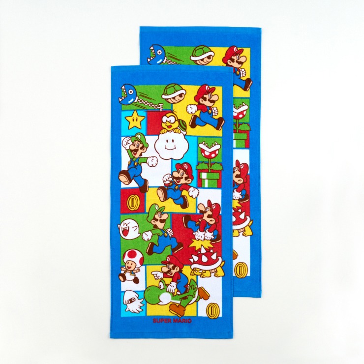 スーパーマリオのデザインの2枚組フェイスタオルです。