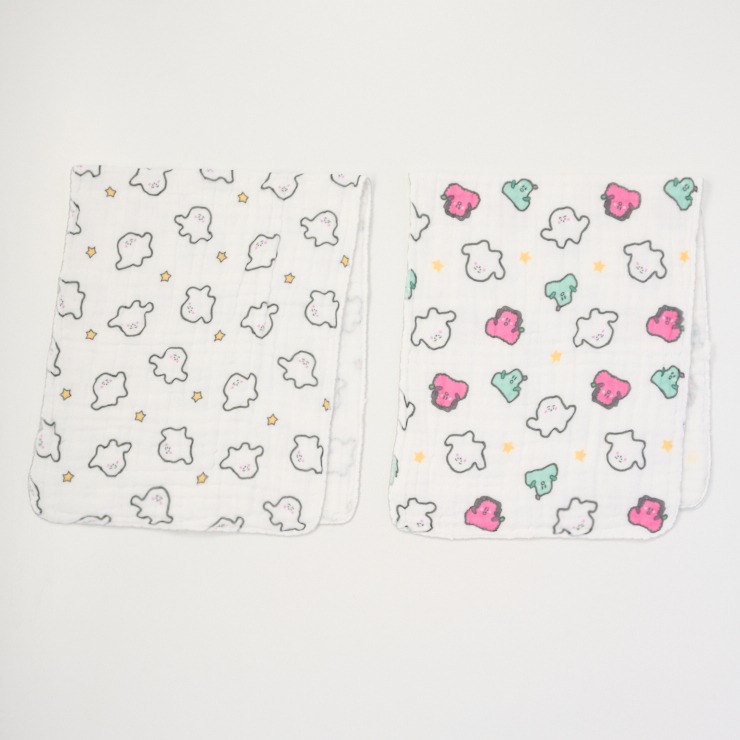 「シナぷしゅ柄」のフェイスタオルです。 2枚組。 たっぷり空気をふくむ6層ガーゼを2枚合わせにしました。 ガーゼ素材は乾きやすく、お洗濯のたびに柔らかくなり肌触りがよくなります。