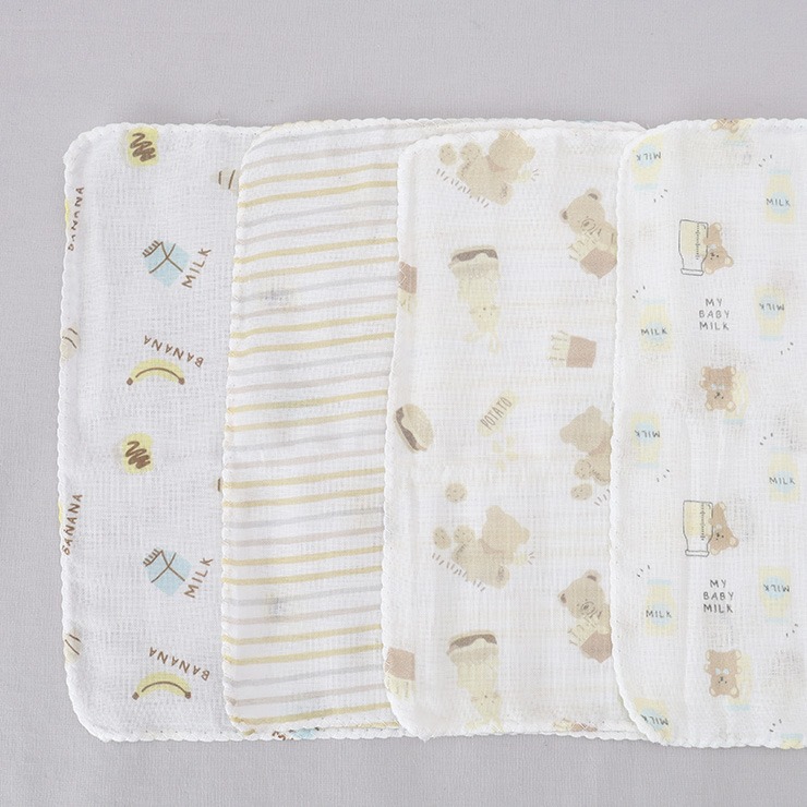 顔などの汗のふき取り、赤ちゃんの沐浴時、食事のエプロンがわりや口のふき取りなどいろいろな用途でご使用いただけます。