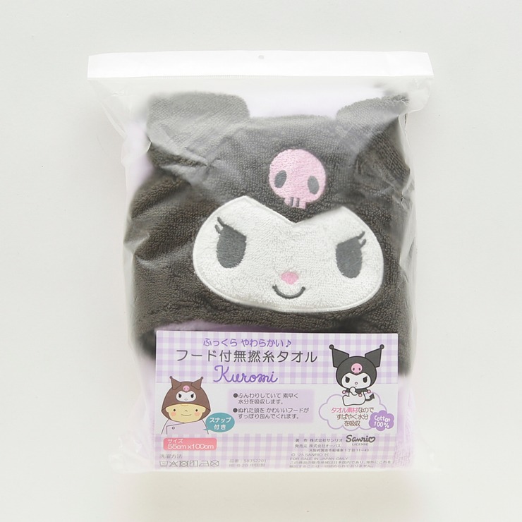 「サンリオキャラクタークロミ柄」のフード付きバスタオルです。