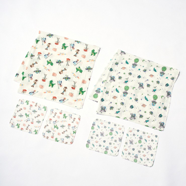 「ディズニーキャラクタートイストーリー柄」のガーゼ6点セツトです。