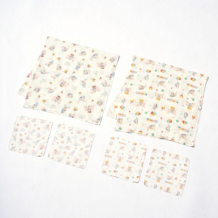 「ディズニーキャラクターダンボ柄」のガーゼ6点セツトです。