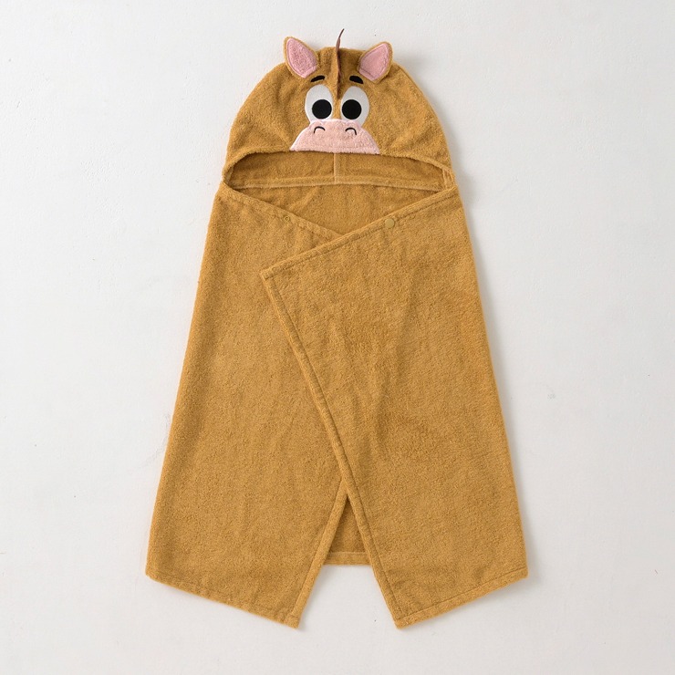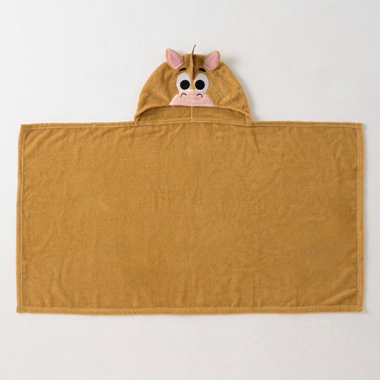 「ディズニーピクサーキャラクターブルズアイ柄」のフード付きバスタオルです。