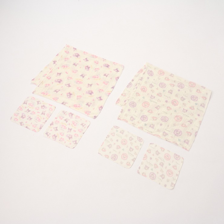 「サンリオキャラクターマイメロデイ&クロミ柄」のガーゼ6点セツトです。