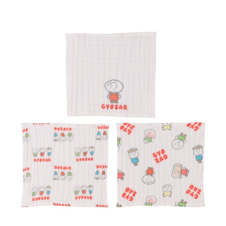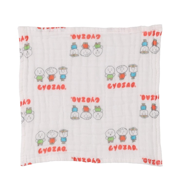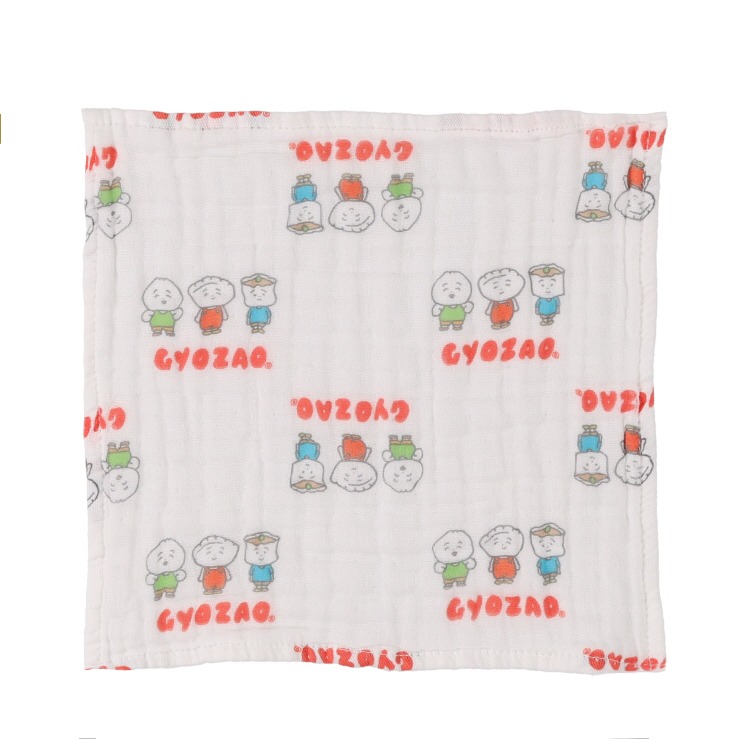 餃子のキャラクター「ぎょざ・ぎょざお、点心フレンズ柄」のガーゼハンカチです。