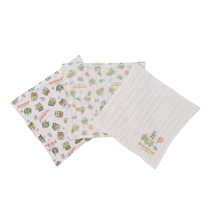 「サンリオキャラクターけろけろけろっぴ柄」のガーゼハンカチです。