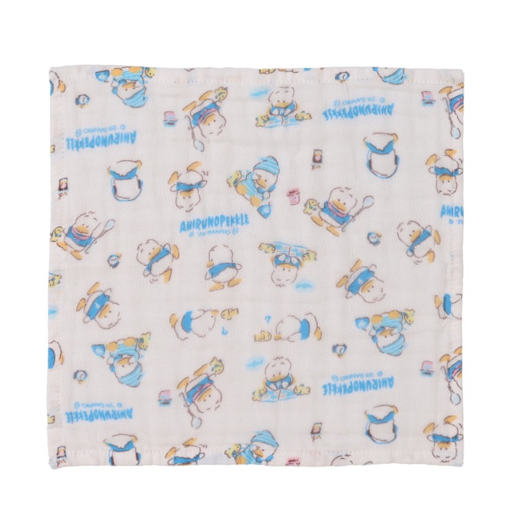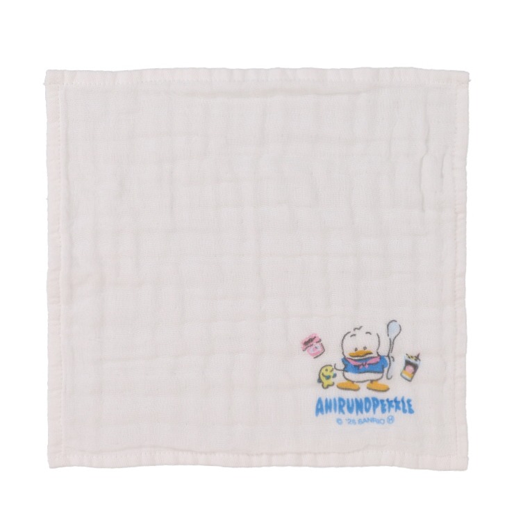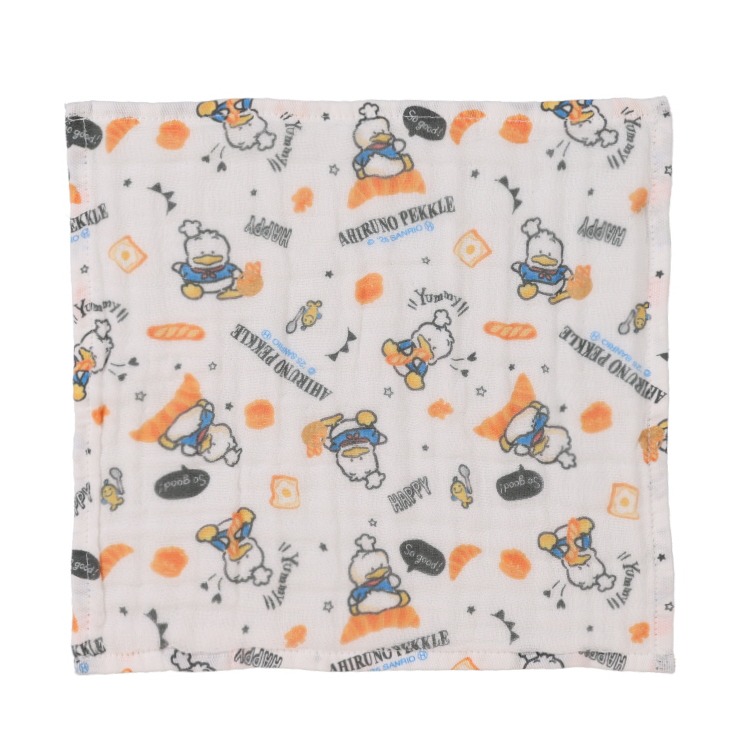 「サンリオキャラクターあひるのぺックル柄」のガーゼハンカチです。