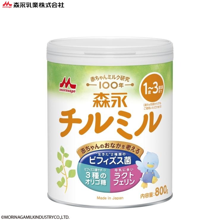 牛乳で不足しがちな鉄分、骨や歯をつくるカルシウム、発育に重要なDHA、18種類のビタミン、ミネラル、ヌクレオチドを配合しています。