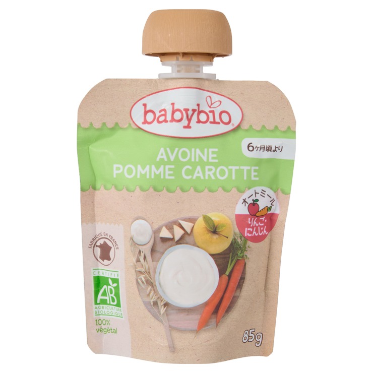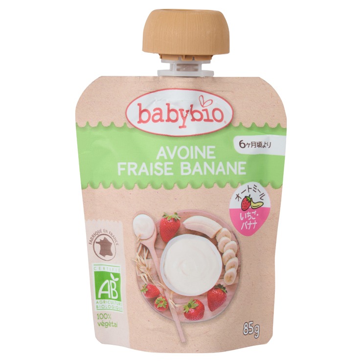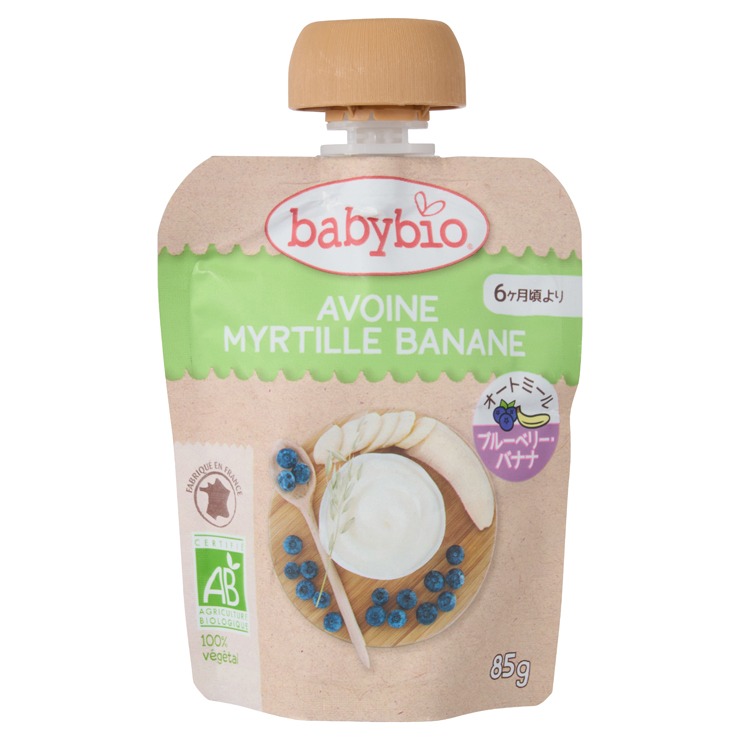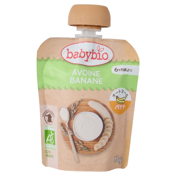 有機果実と有機野菜をブレンドしたオーガニックのベビースムージーと有機オーツ麦と有機果実で作ったスムージータイプのオートミール。