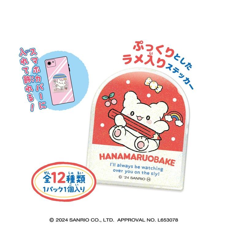 『はなまるおばけ』の樹脂製ラメ入りステッカーです。