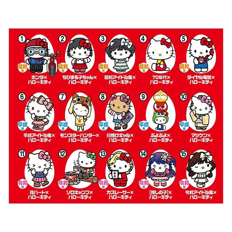 チョコエッグから『ハローキティ』の世代別のキャラクターやモチーフになりきらせることで、幅広い世代に懐かしさと新鮮さを感じてもらうことをイメージしてラインナップされております。