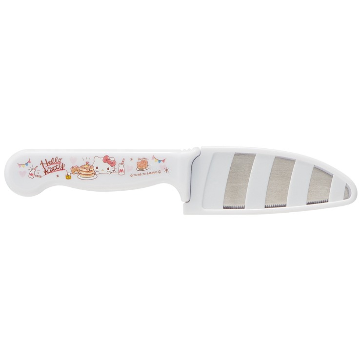 丸い形の刃部分は、触れただけでは切れにくくケガをしにくいギザギザ波刃加工。