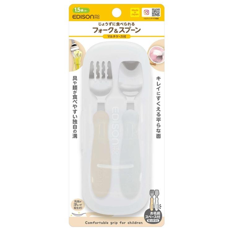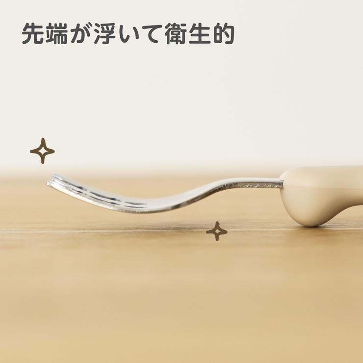 使いやすいから、ひとりでも上手に食べられるフォーク&スプーン。フォークは麺が滑り落ちにくい独自の溝を採用。スプーンは平らな先端がお皿の底にフィットするため最後まできれいにすくえます。上からでも下からでも持ちやすい取っ手。成長に合わせて正しい持ち方をサポートします。先端が浮く衛生統計。持ち運びにも便利な専用ケース付きです。柔らかく落ち着いたカラーなため食卓にも馴染みやすいです。新潟県燕三条の高品質ステンレスを使用。2010年発売以来、長く愛され続けたベストセラーです。