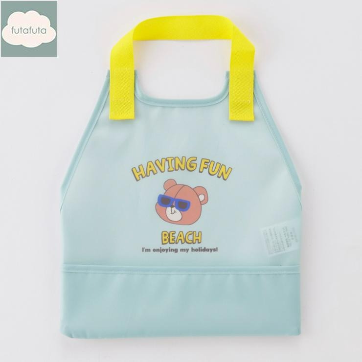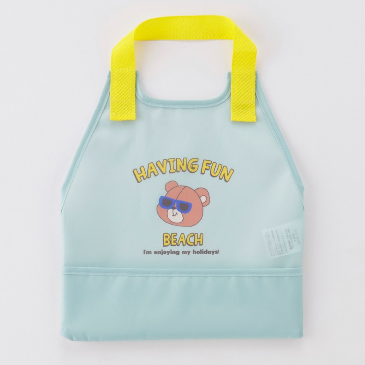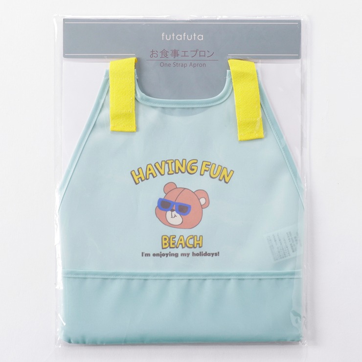 ストラップで着脱簡単。ポケットで食べこぼしをキャッチします。