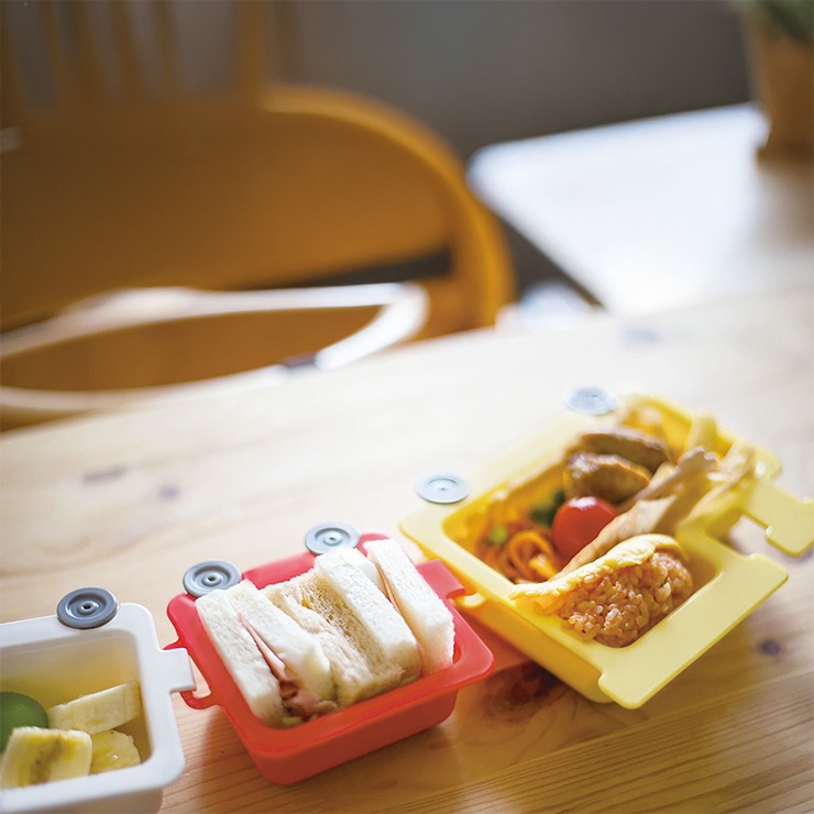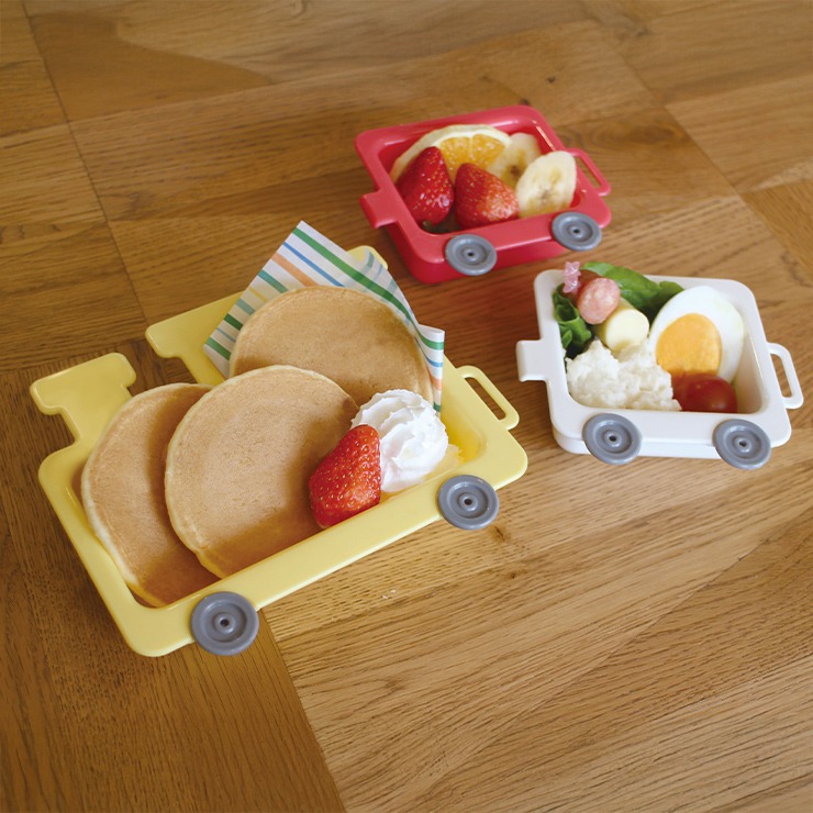 汽車の形をした、まるでおもちゃのようなランチプレート。小皿同士の連結や車輪がクルクル回ります。電子レンジ、食洗器も対応で、調理後片付けの時短にも〇