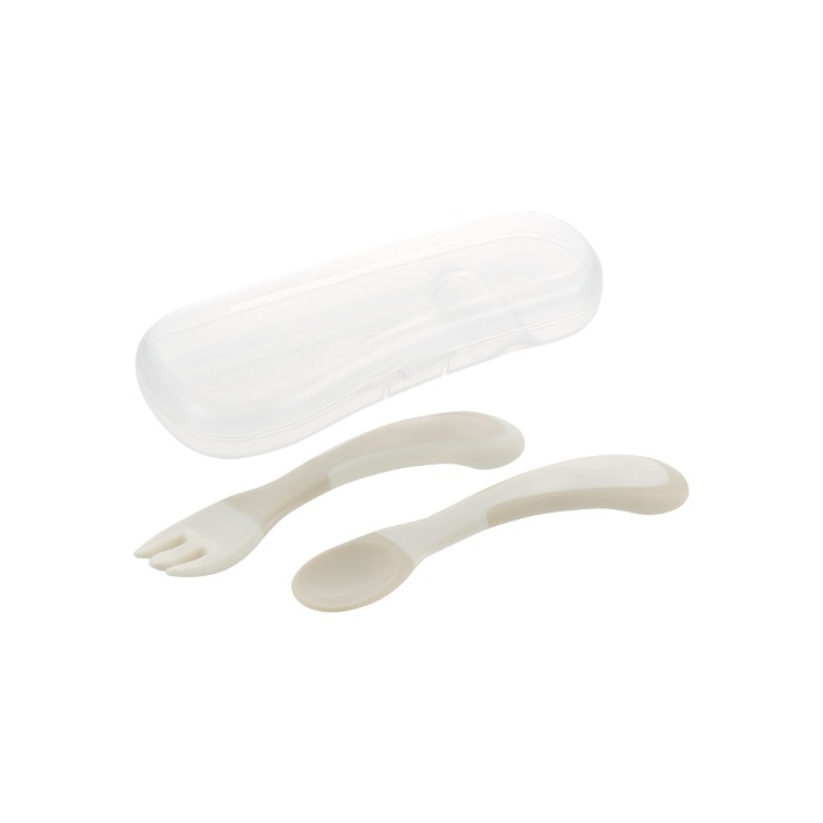 はじめて自分で持つのに、にぎりやすいスプーン・フォークセットです。